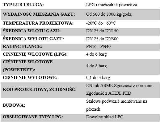 Mieszalnik LPG / powietrza (lub blender) to system, który miesza LPG z powietrzem w pożądanych proporcjach i dostarcza mieszankę gazową LPG / powietrze (SNG). W instalacjach zaprojektowanych do pracy na gaz ziemny mieszalnik LPG / powietrza umożliwia wykorzystanie LPG jako paliwa rezerwowego w przypadku awarii dostaw gazu ziemnego lub w okresach szczytowego zapotrzebowania.
